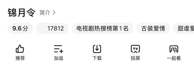 哈妮克孜、黄俊捷主演的《锦月令》一上线,仅 3 小时热度就突破 16000,直接冲上平台榜单第一,平台口碑开分 9.6,成为这个月最惊喜的一匹“黑马”。